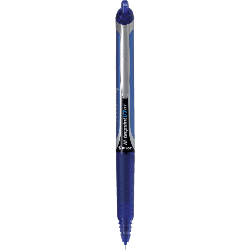 Pilot Hi-Tecpoint Grip RT Retractable Rolling Ball Pen with exceptionally smooth writing ink, premium metal accents, and comfortable grip. Patented Needle Point Technology. Airplane Safe. Refillable.